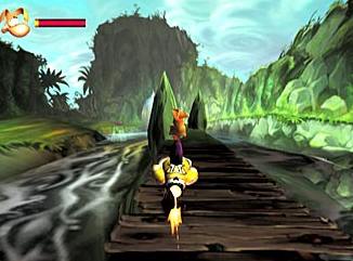 | NIVEL 1 Comienza el juego con un nivel fácil; salta a esa porción de tierra a tu izquierda y escucha los consejos de Murphy. Después. sigue el rastro del agua para llegar a la primera jaula: dispara y salta al agujero que aparece, llegando a una zona con tres Iums. Sube hasta arriba, déjate caer y corre hacia la catarata, consiguiendo el ultimo lum.