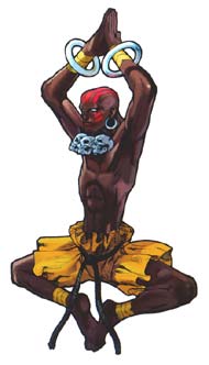 Kuuchuu Miyuu – Start (A, V, AIR) Yoga Palm – Adelante + Puñetazo suave (A, V, X) Drill Zutsuki – Abajo + Puñetazo fuerte (A, V, X, AIR) Drill Kick – Abajo + Cualquier botón de patada (A, V, X, AIR) Yoga Shock – Atrás + Puñetazo suave (A, mantén Puñetazo suave después de ataque) Yoga Flame – Medio círculo adelante, gira el controlador desde Atrás a delante en un único movimiento, Cualquier botón de puñetazo (X) Yoga Blast – Medio círculo adelante, gira el controlador desde Atrás a delante en un único movimiento, Cualquier botón de patada (X) Yoga Flame – Medio círculo adelante, gira el controlador desde delante a Atrás en un único movimiento, Cualquier botón de puñetazo (A, V) Yoga Blast – Medio círculo adelante, gira el controlador desde delante a Atrás en un único movimiento, Cualquier botón de patada (A, V) Yoga Escape – Atrás, Diagonal Abajo, Atrás, Abajo, Cualquier botón de patada (A, V, cuando estés retirándote) Yoga Fire – cuarto de círculo adelante, giro del controlador de Abajo a delante en un Solo Movimiento, Cualquier botón de puñetazo (A, V, X) Yoga Teleport – Golpe de Dragón / , cuarto de círculo atrás, giro del controlador de Abajo a Atrás en un Solo Movimiento, Los tres botones de puñetazo / Los tres botones de patada (A, V, X, air) Super Combos Yoga Inferno – cuarto de círculo adelante, giro del controlador de Abajo a delante en un Solo Movimiento, cuarto de círculo adelante, giro del controlador de Abajo a delante en un Solo Movimiento, Cualquier botón de puñetazo (A) Yoga Stream – cuarto de círculo atrás, giro del controlador de Abajo a Atrás en un Solo Movimiento, cuarto de círculo atrás, giro del controlador de Abajo a Atrás en un Solo Movimiento, Cualquier botón de puñetazo (A) Yoga Strike – Golpe de Dragón, Golpe de Dragón, Cualquier botón de patada (A) Yoga Tempest – Medio círculo adelante, gira el controlador desde Atrás a delante en un único movimiento, Medio círculo adelante, gira el controlador desde Atrás a delante en un único movimiento, Cualquier botón de puñetazo (X) |