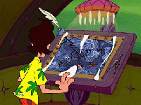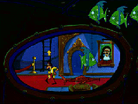 APARTAMENTO – Usa la llave del inventario para abrir la puerta y entrar al apartamento de Ace. – Cuando oigas un golpe en la puerta haz clic sobre ella para contestar. – Habla con Shickadance. – Cuando la luz de encendido del ordenador portátil comience a parpadear haz clic sobre él. – Habla con Woodstock; serás enviado al Nautilus.