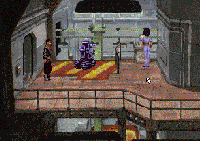 BENEATH A STEEL SKY No sabes muy bien cómo, pero te encuentras en una plataforma metálica en la parte alta de lo que parece una planta de reciclaje. Pero no estás solo, así que buscas la manera de salir de allí. En la parte izquierda de la plataforma, encuentras una pequeña barra con la que puedes abrir la puerta que hay a tu derecha. «¡Fantástico, la puerta está abierta!». ¡Cuidado!, el precipicio que se abre delante tuyo no parece muy fiable. El guardia que vigilaba la planta te ha seguido. !No puede ser tan fácil esquivarle! Corres todo lo deprisa que puedes antes de que vuelva; a la derecha de la sala hay una puerta que te conduce hasta un lugar lleno de trastos y un ascensor que, con un poco de suerte, te sacará de allí. Entre la chatarra encuentras la carcasa de un viejo robot. Esto te servirá. Sólo traes en tu bolsillo el pequeño circuito que dará vida a tu inseparable Joey. Aquí está de nuevo, listo para ayudarte en todo lo que pueda. Tratas de utilizar el ascensor pero lo único que provocas es que la alarma salte, e inmediatamente aparece un hombrecillo muy simpático, Hobbins. Mientras él desconecta la alarma entras a toda velocidad en la habitación contigua y, tras unos segundos de examen, abres un armario. En él hallarás una llave y un bocadillo. No crees que al tomarlo prestado se enfade tu nuevo amigo. Con un pequeño engaño, logras que te diga dónde estás y por qué no funciona el robot transportador ni el ascensor de la otra sala. Está claro que ése es el camino. Joey podrá echarte una mano si se lo pides. El robot comienza a andar y el ascensor funciona, cuando la plataforma desciende, utilizas tus dotes de bombero y te deslizas suavemente por la barra del ascensor, hasta una pequeña habitación con un inmenso horno. Te sientes vigilado y hace calor. Un enorme ojo no te pierde de vista; lo más prudente es salir de allí. Joey no tarda en llegar, y de nuevo con su habilidad, abre la puerta y por ella aparece «el terrible Reich», que cae fulminado ante tus pies por el ojo que permanecía vigilante. La imagen es horrible, pero te armas de valor y al registrarlo encuentras su tarjeta de identidad y unas gafas de sol. Con todos los trastos en el bolsillo decides desaparecer de la espantosa escena.
