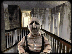Recoge el bolígrafo de la mesa. Escribe el comienzo de la carta. Abre el cajón del medio y de la mesa. «Lee» el colgante. Gira a la derecha y luego a la derecha de nuevo. «Lee» el retrato del jersey rojo dos veces. «Lee» el retrato por encima de la chimenea. «Lee» el fuego de la chimenea. Recoge y examina dos veces el libro azul de la estantería la pradera verde (en grupos de tres en la pared) y luego ve hacia allí y «lee», la ventana hacia la izquierda del busto Griego. Regresa a la mesa. Mira la carta para el Dr. Reynolds y recoge el bolígrafo y acaba la carta, ahora deberían de llamar a la puerta. Mira hacia arriba, Bernice está en la puerta. «Lee» las imágenes múltiples de ella. Luego cliquea sobre B cuando se aproxime (proposición automática y ella se desmaya) «Lee» dos veces el abanico que hay sobre la mesa junto al sillón-. «Lee» dos veces el cuadro del desierto rojo (en grupos de tres en la pared). «Lee la ventana a la izquierda del busto Griego de nuevo. Ve hacia el sillón. Deberías ver la visión parpadeante desde un punto de vista anguloso y luego muévete para obtener un punto de vista frontal. Luego aproxímate a la pared con los tres cuadros. Los cuadros deberían ser todos negros con Bernice desmayándose cuando te aproximas. Mira fuera de la ventana, cerca de la mesa. Regresa a la mesa. Mira a la carta. «Lee» dos veces el retrato del jersey rojo. Da una vuelta en torno a la habitación. Aproxímate a a la puerta desde el ángulo «inferior y derecho». Bernice debería entrar. «Lee» dientes. Mira la escena de los dientes giratorios que aparece en toda la pantalla. Mira los dientes en el retrato de la chimenea. «Lee» el retrato del jersey rojo. «Lee» el dibujo con la cabeza cortada y «lee» el busto Griego. Ve hacia la ventaja junto a la mesa y mira. Siéntate en el pupitre de nuevo y luego mira hacia arriba. Ve hacia la puerta. Ábrela. Cliquea sobre la doncella (el juego se hace oscuro). Vuelve a la mesa, mira al libro. Prueba a coger la caja. Mira al libro de nuevo (llaman a la puerta). Señala y cliquea sobre la puerta. Cliquea en tu mano tres veces. Gira hacia la chimenea, Ve hacia la pala. Regresa a la mesa. Ahora coge la caja, después de una escena automática, debía de acabarse esta pesadilla.