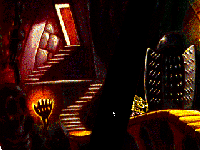 LOS SEIS OBJETOS DE ORO Me dirigí a la posada, me puse la sábana para adquirir la apariencia de un fantasma y el hombre aterrorizado se escondió debajo de las sábanas de su cama, permitiéndome de ese modo moverme libremente por la habitación. Recogí el joyero y realicé una serie de pasos automáticos que me permitieron abrir la caja fuerte camuflada en la pared, pero desgraciadamente no supe qué hacer con el martillo que encontré en su interior. Decidí por tanto volver al presente, regresar a la taberna y volver a hablar con el tipo asustado para que repitiera su relato y me revelara que el fantasma que había visto la noche anterior utilizó el martillo para romper el joyero y encontrar en su interior el pase de entrada a la ciudad.