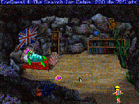 Ya me marchaba, cuando una concha llamó mi atención. Me pareció bonita y la uní a mi colección de artículos. Aprovechando la «exploración» de la ciudad de Eluria, me pasé por los apartamentos Pez, residencia habitual de un buen número de «elurianos». En este lugar, encontré un trapo que utilicé para limpiar la concha. Tras esto, me dirigí otra vez al senado donde tuve que girar las columnas del lado derecho hasta conseguir igualarlas con las del lado izquierdo. Así, la máscara de oro que se encontraba sujeta a la pared cayó al suelo dejando a la vista un cangrejo ermitaño que dijo ser el alcalde Superflous. El nervioso cangrejo me explicó que la ausencia del Rey le estaba obligando a asumir responsabilidades para las que no estaba preparado. Y para colmo de males, tenía que hacerlo llevando una concha que se le quedaba pequeña por momentos. Me acordé de la mía y se la regalé. Agradecido, me dio a cambio una medalla y me solicitó ayuda para avisar a los habitantes de Eluria de la próxima reunión que tendría lugar allí. Encantado de colaborar, me dirigí a los apartamentos Pez donde tuve que enseñar la medalla del alcalde al vigilante. Al verla, me dejó pasar sin problemas. Iba a comenzar mi recorrido por los apartamentos, cuando un pez globo se quedó atrapado en la entrada de su casa: un plástico le impedía respirar. Se lo quité y le conté que el alcalde había convocado una reunión de todos los habitantes, que se celebraría en el senado. Me dio unos erizos como agradecimiento y se fue a la reunión. Seguidamente, me encaminé hacia la primera casa del segundo piso donde hallé un pez ángel totalmente deprimido ante la imposibilidad de comer. Las malditas algas estaban cubriendo todas las plantas que le servían de alimento. Echando mano de mis conocimientos de biología marina, usé los erizos, famosos comedores de algas, para limpiar las plantas de comida. Tras el festín, y la consiguiente explicación de la reunión con el alcalde, este pez me regaló una concha afilada como un cuchillo. Me despedí de él y continué mi búsqueda en la tercera casa del segundo piso, que estaba habitada por un pez espada. Éste luchaba denodadamente por liberarse de unos aros de plástico enganchados a su nariz. Usé la concha afilada y lo solté. Resultó ser el médico de la ciudad que, en compensación por mi ayuda, me donó unas pinzas que rápidamente guardé junto a mis otras pertenencias. Después, fui a la tercera casa del primer piso donde, con la ayuda de las pinzas, pude liberar a la tortuga de una muerte segura. Allí conseguí unos tornillos que me fueron muy útil. Mi siguiente visita fue la segunda casa del primer piso, donde el vigilante me reclamó para evitar que una barca le produjera más heridas con las hélices. La vieja jaula de acero y los tornillos acabaron con los problemas del vigilante. Y, por fin, mi última visita fue para la primera casa del primer piso, donde un pez león me dio una púa venenosa. Terminada mi misión, regresé al senado, donde se estaba celebrando la reunión. Cuando concluyó, el alcalde me ofreció la máscara de oro (una prueba de confianza, según él). La llevé ante el oráculo y se la ofrecí. A cambio, la profecía me fue revelada. Inicié un viaje hacia el arrecife y encontré un espejo; un pez linterna, que guardé en el bote ( con cuya tapadera abrí un acalorado pulpo con el que me crucé); y un cable, que también se unió a mi colección de objetos.