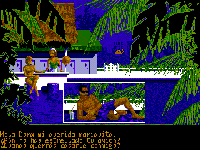 Salí de la piscina y me dirigí hasta la cabina más cercana. Introduje la ficha para poder marcar el teléfono de Jeffrey, y él me dio un código confidencial. Tras apuntarlo, salí de la cabina y me dirigí al edificio del Q.U.L. Allí se me pidió un código -introduje el que tenía una letra- y pude subir. Necesitaba coger la llave del conserje, y tuve que apaciguar al perro que me lo impedía, dándole un azucarillo. Cogí las llaves del cuchitril y me las guardé.