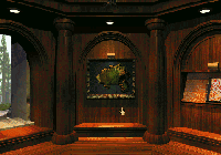 LA BIBLIOTECA La siguiente parada es en la biblioteca. Aparte de algunos libros quemados, hay otros que explican cosas acerca de los diversos mundos que componen Myst. Recordando técnicas ya olvidadas (de cuando el mapeo automático y los blocs de notas incorporados eran algo desconocido) cojo papel y lápiz y me pongo a anotar lo que me parece más importante. Por otra parte, me llama la atención un mapa de la isla con unas marcas en blanco que al parecer coinciden con algunos de los edificios que he visto. Sin embargo, no están todos los que son. ¿Y si tocara los interruptores de señalamiento? Decido recorrer de nuevo la isla conectando todos los interruptores que vea (decido que un interruptor está conectado cuando la palanca está hacia arriba y desconectado cuando la palanca está hacia abajo). Ahora salen en el mapa todos los edificios y cuando presiono con el puntero sobre la marca de la torre, una línea blanca que sale de la misma va girando por el mapa, volviéndose roja cuando intersecciona con alguno de los edificios. A la vez se oye un ruido como de alguna estructura moviéndose. Tocando uno de los cuadros de la biblioteca se abre un pasaje secreto que lleva a un ascensor. Una vez en la torre compruebo que hay dos escaleras, desde lo alto de una de las cuales se ve (por una tronera) un edificio de la isla y desde la otra (en una placa en la pared) una clave. También veo dos libros parecidos al que me trajo hasta aquí, uno rojo y otro azul, a los que se le han arrancado diversas páginas, cada uno con una imagen medio borrosa y un mensaje entrecortado. Si pudiera encontrar las páginas arrancadas … Está claro que cada uno de los edificios contiene una forma de viajar a uno de los mundos (edades) de Myst. Tan sólo hay que buscar la clave que permite activar cada portal. LA EDAD SELENITA A) Cómo llegar: para empezar decido seleccionar la nave espacial en el mapa, comprobando (en la torre) que la clave es 59 voltios. Me voy hacia la nave pero no consigo abrir la puerta. Observo que hay un tendido eléctrico que llega hasta allí y lo sigo hasta una subestación eléctrica. Bajando hasta la sala de control veo una serie de botones. Apretando unos y otros observo que la energía obtenida es diferente con cada combinación de botones e intento ajustarla a los 59 voltios que me indicaba la clave. No es fácil porque si te pasas salta o el interruptor que hay junto a la subestación o el que hay junto a la nave. Al final consigo determinar que se trata del primer y tercer botón de la columna de la izquierda y del tercero y el cuarto de la columna de la derecha. Ahora puedo abrir la nave, que tiene un teclado como de piano en la parte de atrás y unos reostatos en la parte de delante. En el libro que hablaba de la edad selenita había un diagrama de unas teclas de un piano por lo que supongo que tengo que tocar las notas correspondientes en el teclado y ajustar los reostatos del otro lado para que den las mismas notas. Tras ímprobos esfuerzos consigo arrancar la nave y llegar a la edad selenita. B) Qué hacer allí: lo primero que veo parece un ascensor, pero no hay manera de abrirlo. Lo que sí se deja manipular es una serie de antenas transmisoras, en cada una de las cuales se escucha un tipo de sonido diferente (agua, volcán, reloj, tonos y viento) y una estación receptora. Hay un botón rojo en cada antena que activa un micrófono, el cual transmite el sonido a la estación receptora. En cada una se encienden símbolos diferentes, que anoto cuidadosamente. Tras activar las cinco antenas, atravieso el túnel de viento hasta la estación receptora. Aquí apunto cada cámara hacia una antena (agua: 153’4, volcán: 130’3, reloj: 55’6, tonos: 15’0 y viento 212’2) y luego aprieto el botón marcado S y oigo los mismos sonidos en una secuencia (tonos, agua, viento, volcán, reloj) que espero me permita abrir el ascensor. En uno de los viajes de un lado para otro veo una página roja y la cojo. Luego me encuentro una página azul y al cogerla desaparece la roja. Vuelvo a donde encontré la roja y vuelve a estar allí, por lo que deduzco que sólo puedo llevarme una a la vez. Una vez abierto el ascensor, me lleva hasta un laberinto donde me espera un divertido vehículo manejado, como todo aquí, por sonidos (N= campanilla, S= trino, E= freno de aire, O= campana y las combinaciones de dos de ellas sirven para las direcciones intermedias). Tras montones de pruebas descubro que la combinación correcta de direcciones es N, O, N, E, E, S, S, O, SO, O, NO, EN, N, SE. Llego al final de un túnel y encuentro un libro que me transporta de vuelta a la biblioteca de Myst donde coloco la página roja en su libro correspondiente y recibo un mensaje. Repito la operación con la página azul y me dispongo a explorar el segundo de los mundos.