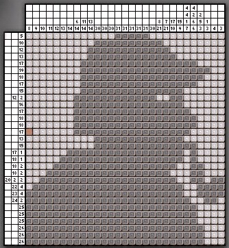 El Enigma de las Fichas: Este puzzle consiste en que tenemos que colocar las fichas para realizar un dibujo. Hay dos tipos de fichas oscuras y claras y unos números en la parte superior y lateral del tablero.Los números indican el numero de fichas seguidas que debemos colocar de fichas oscuras. Llamaremos columnas a las líneas verticales y filas a las líneas horizontales. Si en una columna vienen cuatro números, por ejemplo 4, 6, 7, 4 deberemos colocar en esa columna 4 fichas oscuras, una o más blancas, 6 oscuras, una o más blancas, 7 oscuras, una o más blancas y cuatro oscuras. El dilema es saber donde colocarlas y cuantas blancas colocar entre las oscuras. Pero para averiguarlo tendrás que ir deduciendo según los números que veas en las filas y columnas. Para empezar el puzzle, fíjate que hay 5 columnas seguidas que tienen el número 31. Eso indica que en esas 5 columnas habrá que poner todas las fichas oscuras, pues el tablero tiene un total de 31 cuadrados en vertical. Ahora mira la primera fila. Hay un 5 y eso indica que debe haber 5 oscuras seguidas. Como ya las tienes puestas de las 5 columnas, por deducción el resto de los cuadrados de la primera fila serán blancos. Como ya tenemos la primera fila completa, ahora pasa a rellenar las columnas que tienen el número 30, pues ya es fácil deducir que todas las que faltan serán oscuras. Ese es el mecanismo del puzzle y poco a poco se irá rellenando y te será más fácil colocar las fichas. No obstante, si te resulta demasiado complicado, pincha en la foto para ver la solución del puzzle y también para averiguar un truco que lo resolverá automáticamente. Cuando resuelves el puzzle, Ve al cuarto del museo donde estaba el mecanismo bajo la alfombra. Coloca la palanca y tira de ella. Una escena te mostrará un sarcófago que se abre dejando ver otro mecanismo. Dirígete a la última sala del museo y encuentra el mecanismo. Cuando haces clic en la maquinaria bajo el sarcófago, Sherlock te permitirá saber que necesitas más luz. Date la vuelta y regresa al primer cuarto del museo fuera del estudio. Ve hasta la lámpara que hay en la pared encima del sarcófago que está en una urna de cristal rota. En tu inventario usa el frasco de aceite con tu lámpara y usa la lámpara entonces en la lámpara de la pared. Ahora tienes tu lámpara encendida. Regresa a través de los otros dos cuartos y haz clic ahora con la lámpara encendida en el sarcófago abierto. Te encontrarás de nuevo en el almacén. Con la escalera de mano por la que descendiste a tu espalda, ve a la esquina izquierda lejana del cuarto y recoge una SOGA que cuelga del estante en la esquina izquierda del almacén. Ahora sal por la puerta al laboratorio.