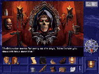 Aquí Allanon se une a nosotros y todos nos cargamos la tira de bichos en otra batalla. Al final todos vuelven a hablar. (Esto parece un nido de cotorras ya!!!). Vemos de nuevo al malo, Brona, cada vez más cabreado, proque no le sale nada bien y nosotros superamos todas las dificultades. Allanon se va y aparecemos los 5 frente a unas puertas y pudiendo ir en las cuatro direcciones. Si vamos al S, O o E, nos encontraremos a un bicho con el que tendremos que pelear. Es poco y vencemos enseguida, pero no vale la pena. Lo mejor es quedarse aquí, en el hall. Decirle a Telsek que empuje la estatua y así ya no habrán mosntruos en las otras direcciones que puedan venis a incordiarnos. Abrir la puerta central y entrar. Aparece un shifter, un bicho salido de la película Alien, que nos habla y se nos quiere merendar. Deberemos luchar contra él. Ordenar a Davio que use las piedras elfas y luchamos to- dos contra el bicho. Pero nos va derrotando, por lo que le decimos otra vez a Davio que use las piedras. No puede porque estan descargadas y nece- sitas unos minutos para que vuelvan a tener todo su poder, pero una vez es- tán listas nos lo cargamos en un periquete. Coger la diadema del suelo, que es la «Magic Torc» y se la queda Geeka en su inventario. Atravesamos la puerta de enfrente y llegamos a otra ha- bitación con una grieta en el suelo, lo que nos impide pasar. Volver atrás y decirle a Telsek que coja la puerta medio destrozada y así aparecemos otra vez en la otra habitación, con la puerta puesta sobre la grieta y ya podemos seguir. Vamos dos veces al N. Telsek se queda para cubrirnos las espaldas por si aparece algún bicho más. Aparecemos en una especie de salón con dos grandes columnas delante. Es una jaula y no podemos pasar ni entrar en ella. Intentar las palabras «lift» y «push» en los dos barrotes y decirle a Brendell que nos ayude. Así Geeka se cuela y le hablamos de todo. Pero como nos ha seguido para llegar justo hasta aquí, coge el casco que tanto quiere y un rayo lo mata, a parte de que se abre un agujero en el suelo y el casco cae por ahí. Apretar los barrotes hasta avanzar y que el agujero del suelo ya no se vea, usar la cuerda en un barrote y bajar. Llegamos como a una especie de cámara de los tesoros. Mirar en la par- te más superior del ídolo que podamos y decirle a Brendell que use el martillo en el ojo de cristal del ídolo. Salen 3 zombies que nos cargamos sin problemas y subimos por el ídolo. Ahora veremos otra secuencia del malo calavera que ya está cabreado del todo. Y así llegamos, por fín, a nuestra pesadilla: el malito cabreado. Dejar que se enrolle y usar la palabra «draw». Usar la espada del inven- tario (la primera). Aparece Allanon y hablamos la primera frase. Ahora coger el corredor del fondo con la mini flechita que sale como cursor y siempre coger la puerta de la derecha. Saldrán todos nuestros colegas muertos, les diremos la primera frase y seguiremos, hasta que vuelva a salir Allanon y le con- testemos la última frase. Y así volvemos a estar frente a Brona. Atacar el libro con la espada de Shannara (la primera del inventario) y así Brona desaparece y leemos sus últimas frases. Hablar de todo con Allanon, que nos explicará todo lo que ha pasado y volvemos a reunirnos todo el grupo de nuestros colegas «vivos» que aún quedan. Hablamos con todos ellos y hay mucha conversación. La espada ya está depositada en el lugar que le corresponde y después de más charlas y algo de texto la aventura se acaba.